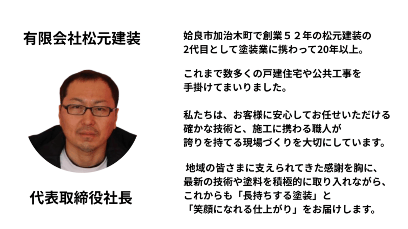 有限会社松元建装の代表取締役社長挨拶